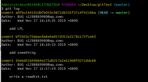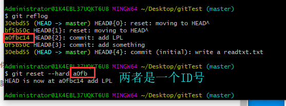 但是要注意的是咱们执行git log 只有2个版本了,add lpl的版本不见了!咋办很慌啊?