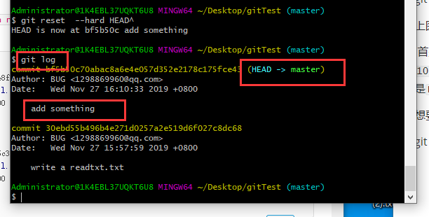 git reset –hard HEAD^ 表示要回到上一个版本