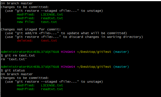 添加了一个文件到版本库之后,如果这个文件删除了,那么git status的时候就会显示这个文件已经删除了,如果不要这个文件了,可以 git rm xxx 从本地版本库中删除xxx文件。